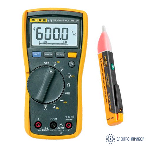 Комплект Fluke 115/1AC-II Kit состоит из мультиметра цифрового Fluke 115 и карманного индикатора переменного напряжения 200-1000V Fluke 1AC-II VoltAlert.