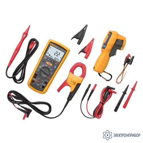 Комплект Fluke 1587KIT/62MAX+ FC состоит из мультиметра-мегаомметра c функцией беспроводной связи Fluke 1587 FC, инфракрасного термометра Fluke 62MAX+ и токовых клещей Fluke i400.