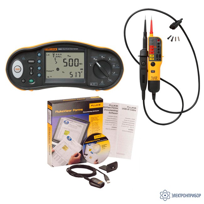 Комплект Fluke 1663/T130 KIT/F состоит из многофункционального тестера электроустановок Fluke 1663, пробника напряжения Fluke T130 и ПО Fluke FVF.
