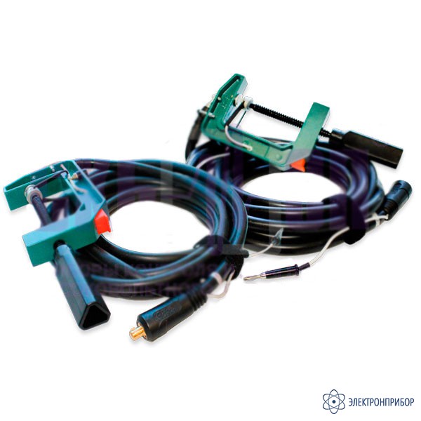 Измерительные кабели с зажимом типа "струбцина" (захват до 80 мм.) Содержат токовый и потенциальный провод. Рекомендованы для всех выключателей до 35 кВ и части выключателей до 110кВ. Длина 4,5 м. Масса 3,72 кг. В комплекте — 2 шт.