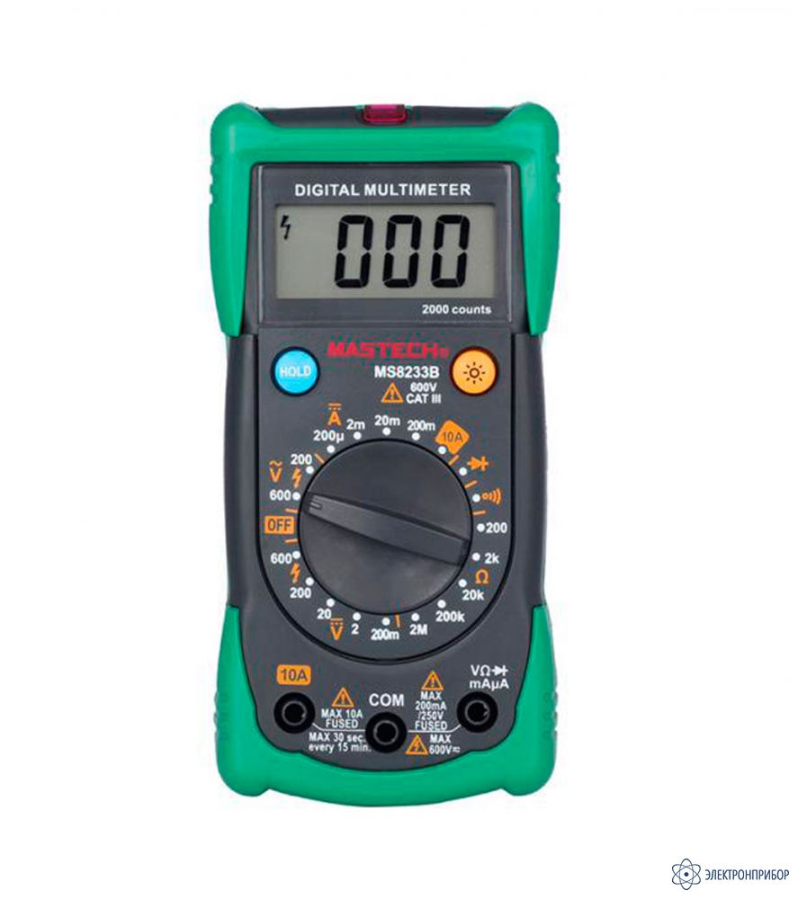 Мультиметр Mastech MS8233B измеряет ключевые параметры электрических цепей и выдает результаты проведенных замеров на ЖК-дисплей с хорошо читаемыми символами. Применяя данную модель во время ремонтных или монтажных работ, вы сможете измерить постоянный ток, переменное и постоянное напряжение, сопротивление. С помощью портативного прибора также удобно проверять целостность электрической цепи и прозванивать диоды.